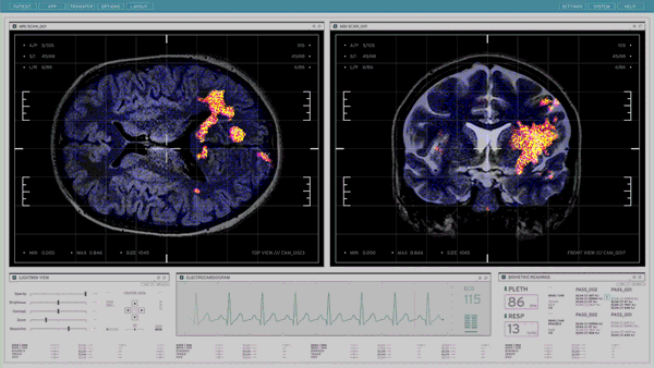Territory Studio was commissioned to design the screen graphics for a number of sets including the mission control room, the satellite communications station, and the space shuttle interior sets.